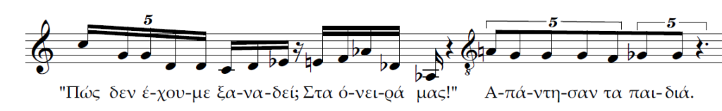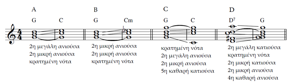 Γ) Ίδια περίπτωση διαστημάτων με το Α, με ένα επιπλέον, την 5η καθαρή κατιούσα. Επομένως η ρητορική που παραπέμπει σε αίσθηση τελείας εντείνεται καθώς και η 5η καθαρή κατιούσα κατατάσσεται στα διαστήματα που ανήκουν στο χώρο της τελείας.