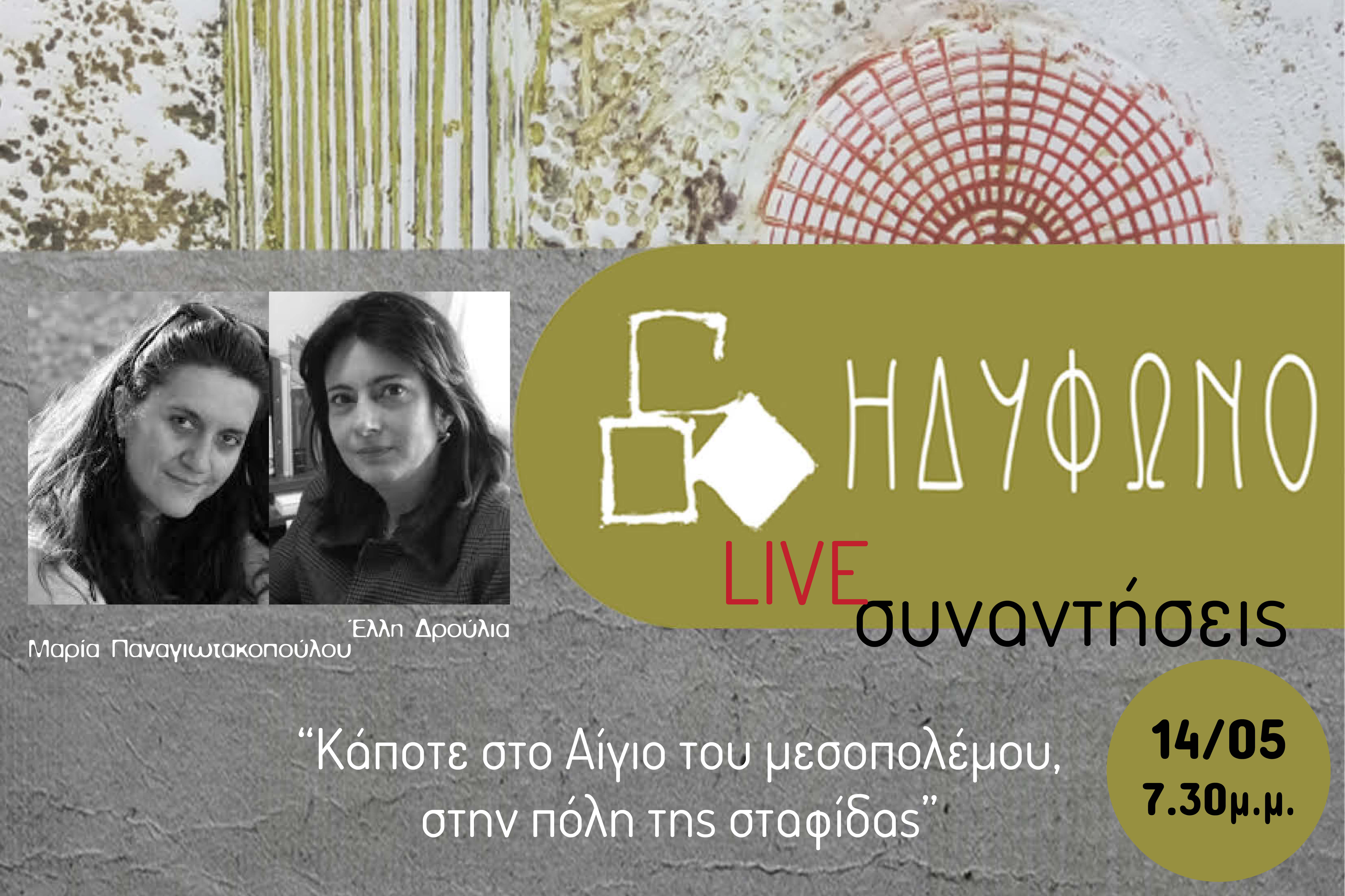 «Κάποτε στο Αίγιο του μεσοπολέμου, στην πόλη της σταφίδας» Με αφορμή το βιβλίο της «Κάποτε στο Αίγιο» η συγγραφέας Μαρία Παναγιωτακοπούλου συναντιέται με την ιστορικό και διευθύντρια της βιβλιοθήκης της Βουλής κ.Έλλη Δρούλια για να μιλήσουν για το Αίγιο της σταφίδας την εποχή του μεσοπολέμου, τον ρόλο που έπαιξε και παίζει η σταφίδα στη διαμόρφωση της κοινωνίας και της οικονομίας του τόπου αλλά και τη σημασία της μικροϊστορίας. Μνήμες, διηγήσεις, αρώματα άλλης εποχής αλλά και νέες προοπτικές με άξονα τη σταφίδα!