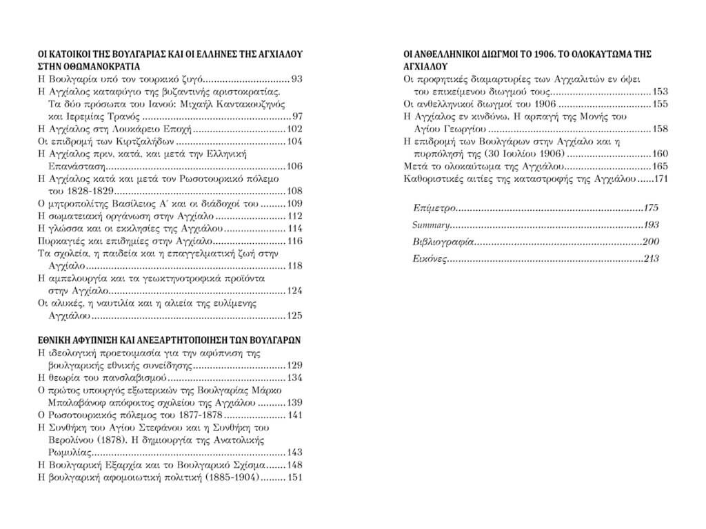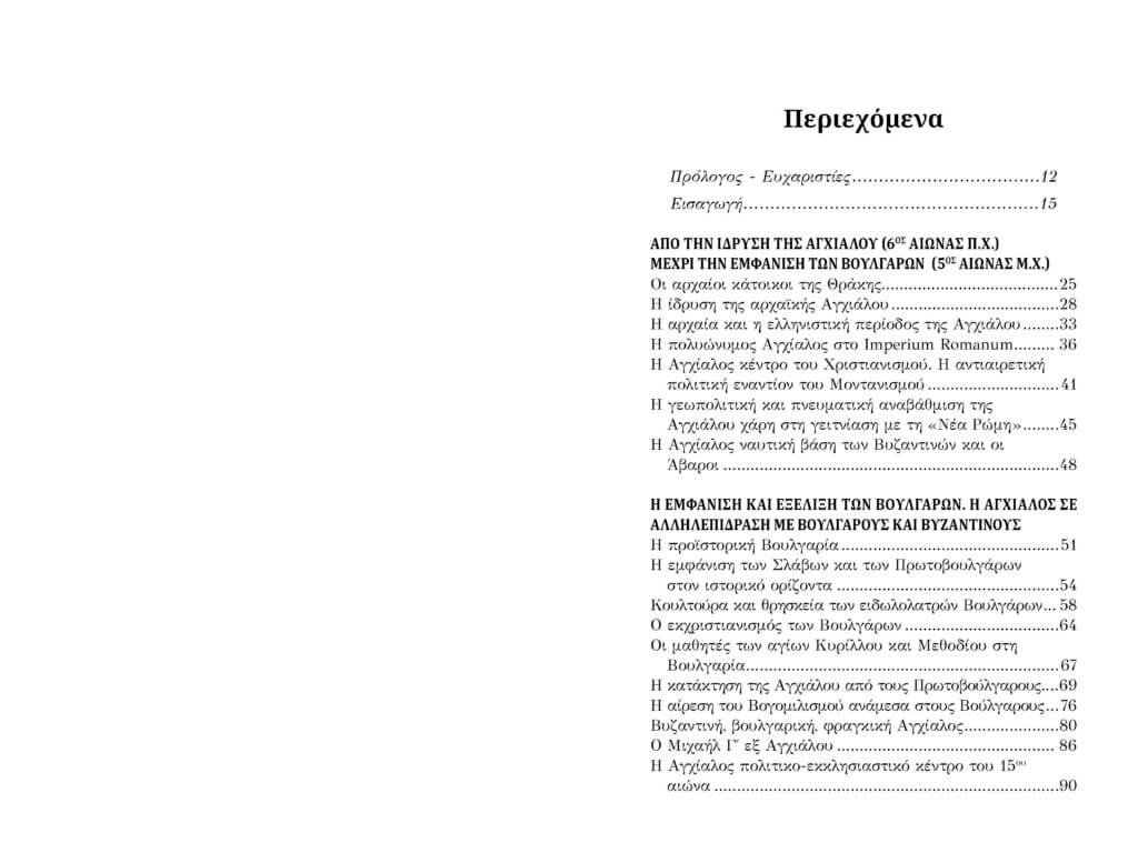 Το σύγγραμμα αυτό αποτελεί μια συνθετική και αναλυτική παρουσίαση της ιστορίας των συμβάντων της Αγχιάλου, μιας ελληνικής πόλης του Ευξείνου Πόντου, από τον 6ο αιώνα π.Χ. μέχρι το διωγμό των Ελλήνων κατοίκων της από τους Βούλγαρους εθνικιστές το 1906. Όμως ταυτόχρονα στο βιβλίο αυτό περιέχονται τα ιδεολογικά στοιχεία που δίνουν το πνευματικό στίγμα κάθε ιστορικής περιόδου.